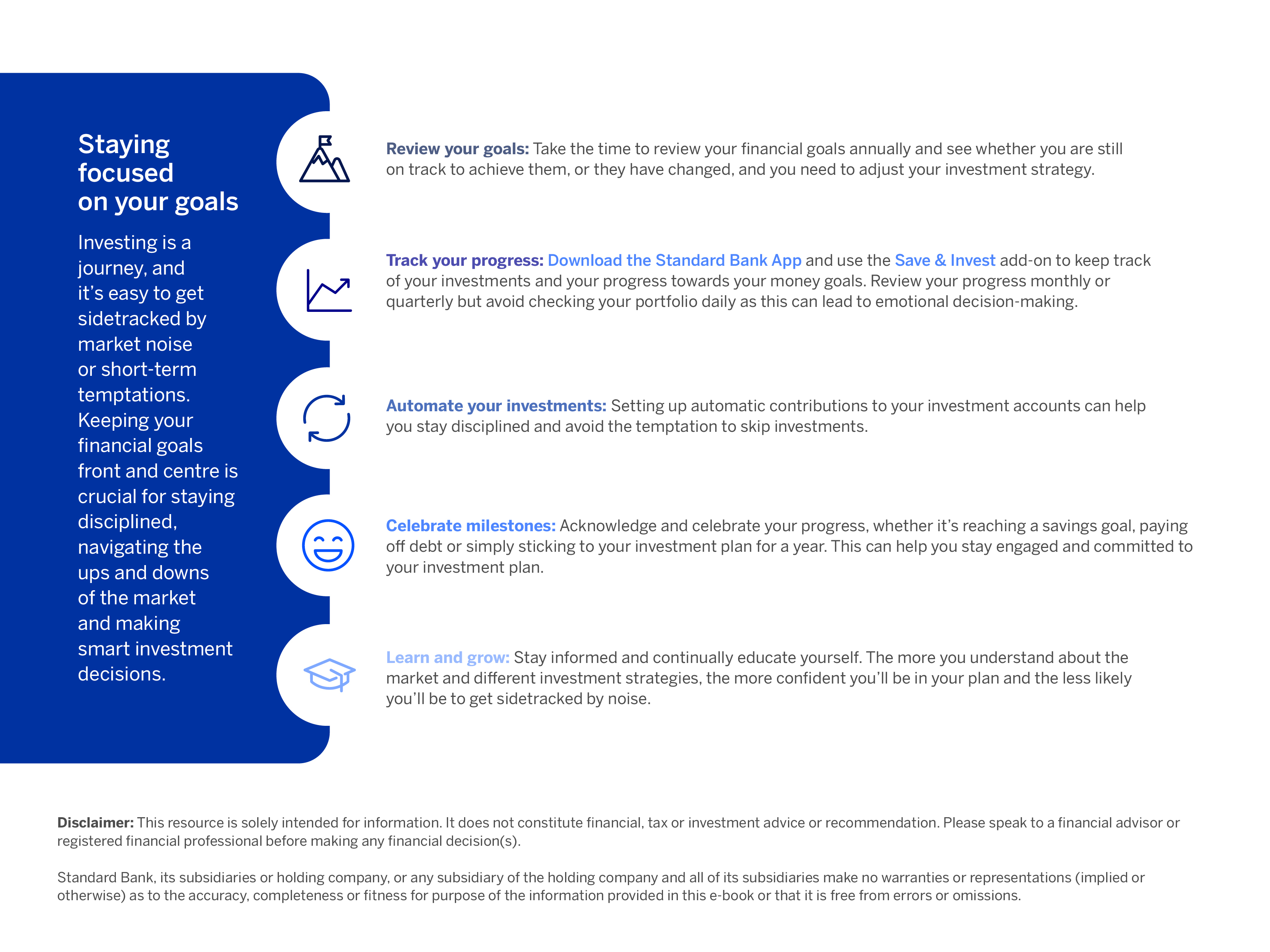 Standard Bank, its subsidiaries or holding company, any subsidiary of the holding company and all of its subsidiaries, make no warranties or representations (implied or expressed) as to the accuracy, completeness, or suitability of the content of this article. The use of the article and any reliance on the content is at the reader’s risk.